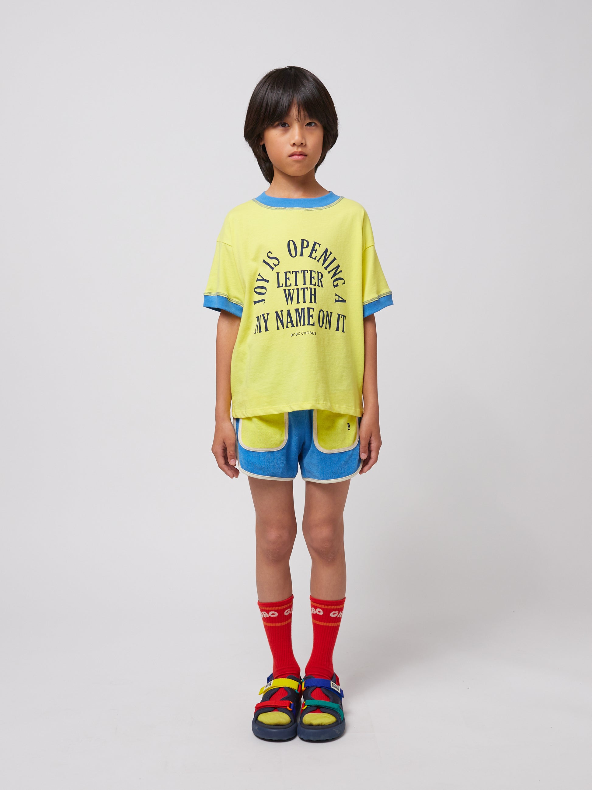 Confeccionado con un 88 % de algodón orgánico y un 12 % de poliéster reciclado, cuenta con tiro estándar, cinturilla elástica y detalles en contraste.